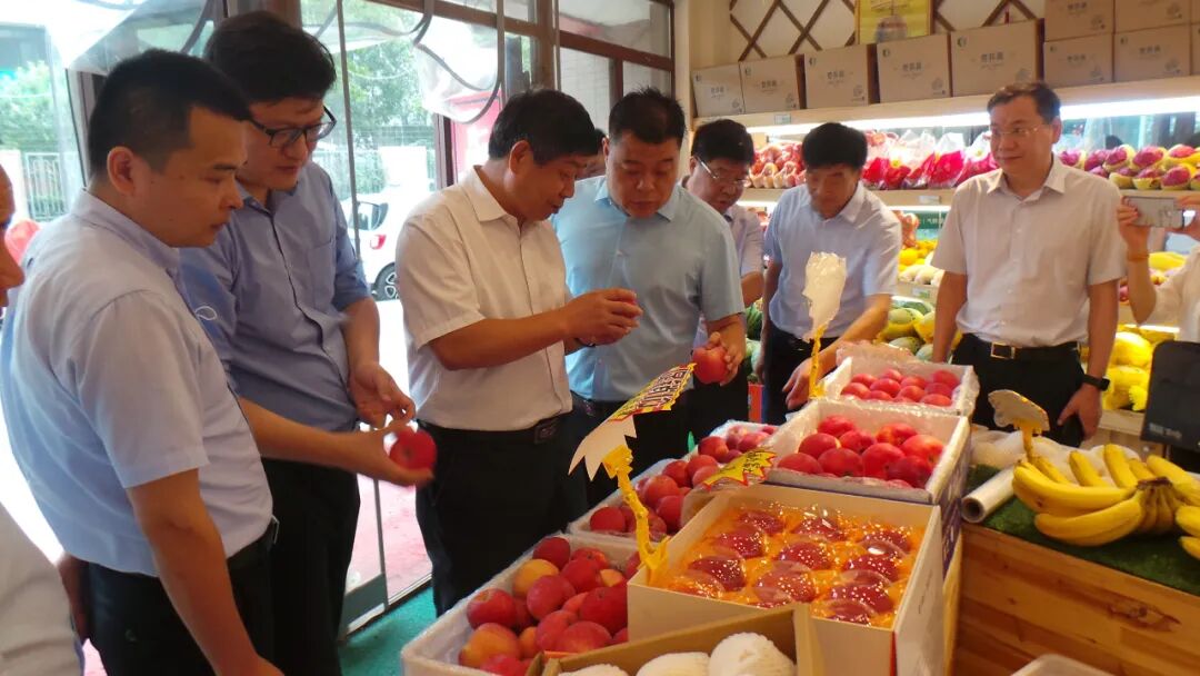 考察组先后来到南京陕果集市麒麟店、众彩农产品市场陕果扶贫专区、陕果物流配送中心进行实地考察,对陕果扶风公司做出的成绩给予充分肯定,希望扶风公司继续按照苏陕扶贫协作总体要求,自我加压、再添措施,加快陕西果品农特产品物流园和陕果品牌直营店项目建设进度,让苏陕扶贫协作成果惠及徐宝两地群众。