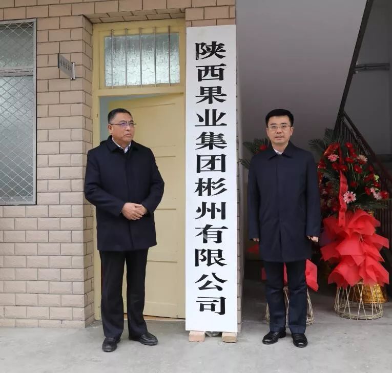 2019年12月31日下午,陕果集团彬州有限公司揭牌仪式在彬州举行。陕果集团党委书记、董事长高建国和彬州市委书记钟伟为公司成立揭牌。集团副总经理齐胜利、彬州市长王宏志、市委副书记谢蓉等双方有关领导参加揭牌仪式。